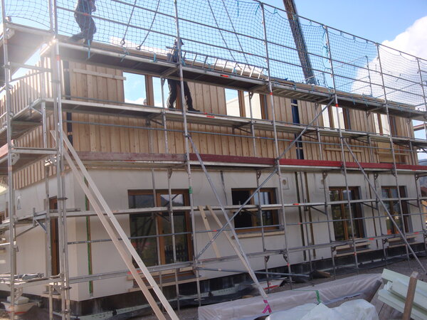 Bei der Bauweise haben wir Wert auf Energieeffizienz gelegt: dreifach verglaste Fenster, eine gute Fassadendämmung aus ökologischen Materialien und eine luftdichte Gebäudehülle, damit keine Wärme verloren geht. Gleichzeitig ist die Wandkonstruktion diffusionsoffen, was für ein ausgeglichenes Raumklima und eine gute Feuchtigkeitsregulierung sorgt.