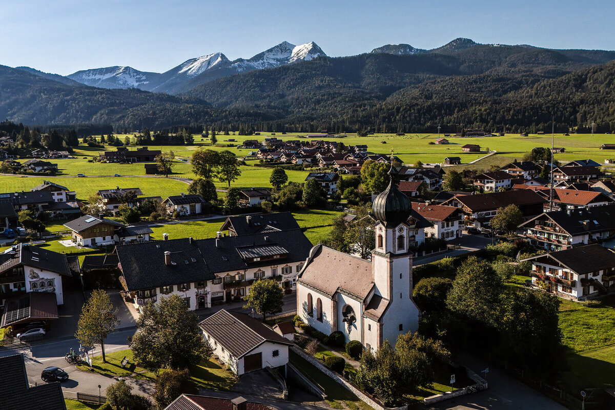 Krün selbst ist ein charmantes Dorf, das bayerische Tradition und Gastfreundschaft mit einer zentralen Lage verbindet. Von hier aus erreichen Sie Sehenswürdigkeiten wie Mittenwald, Garmisch-Partenkirchen oder den Walchensee in kurzer Zeit. Jede Tour wird so zum abwechslungsreichen Tagesausflug.